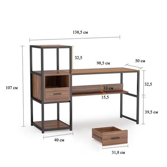 Способы оплаты Способы доставкиНапольный, удобный в использовании стол-стеллаж с несколькими ящиками. Стол выполнен на металлическом цельно сваренном каркасе из металлической профильной трубы, с покрытием порошковой краской. Все ящики и полки изготовлены из ЛДСП. Ножки обладают регулируемыми опорами, которые не царапают напольное покрытие.