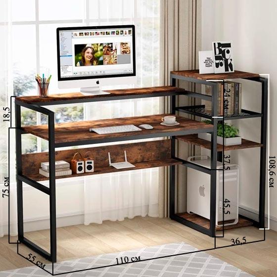 Способы оплаты Способы доставкиНапольный стол со стеллажом с одной стороны функциональный, при этом он достаточно стильно смотрится в интерьере. Стол изготовлен полностью на металлическом цельно сваренном каркасе. Снизу в ножки вкручены регулируемые опоры, которые предотвращают механическое повреждение напольного покрытия. Одна из полок выполнена из решетки, остальные - ЛДСП.