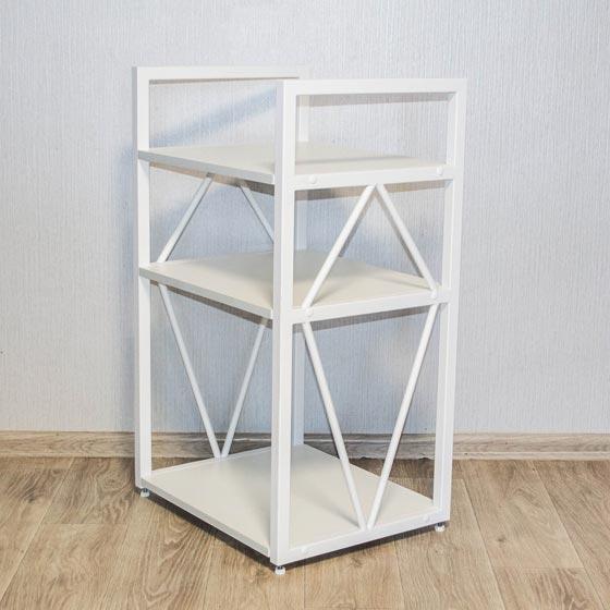 Способы оплаты Способы доставкиТумба для принтера и другой офисной техники. По бокам изделия геометрические элементы в виде треугольников заметно украшают изделие. Снизу стеллаж выполнен на колесиках для удобства. Весь каркас изготовлен из металла, с покрытием.
