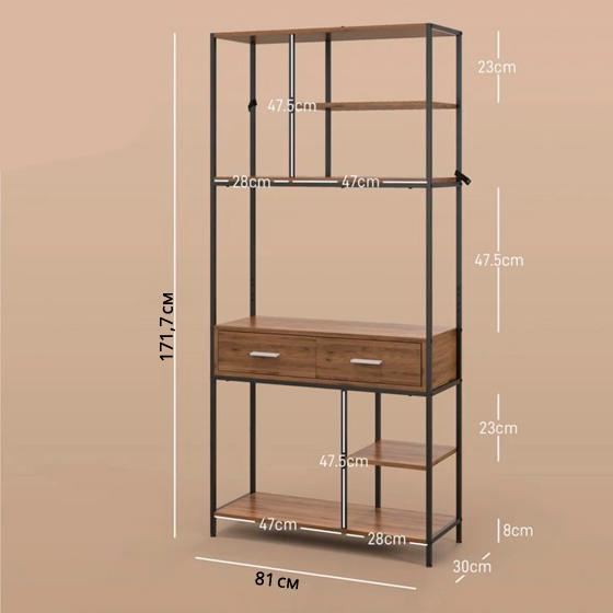 Способы оплаты Способы доставкиНапольный, высокий стеллаж, изготовленный из металлической профильной трубы, с покрытием порошковой краской. Стеллаж не разборный, цельно сваренный, с открытыми полками из ЛДСП. Изделие обладает двумя выдвижными ящиками, которые удобно использовать для различных аксессуаров.