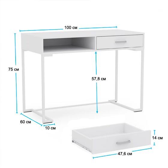 Способы оплаты Способы доставкиНапольный письменный стол на металлическом каркасе, выполнен для дома и офиса. Он обладает несколькими выдвижными ящиками, которые выполнены из ЛДСП. Стол оснащен регулируемыми опорами на ножках, благодаря которым стол не царапает напольное покрытие. Металлический каркас изделия покрыт порошковой краской.