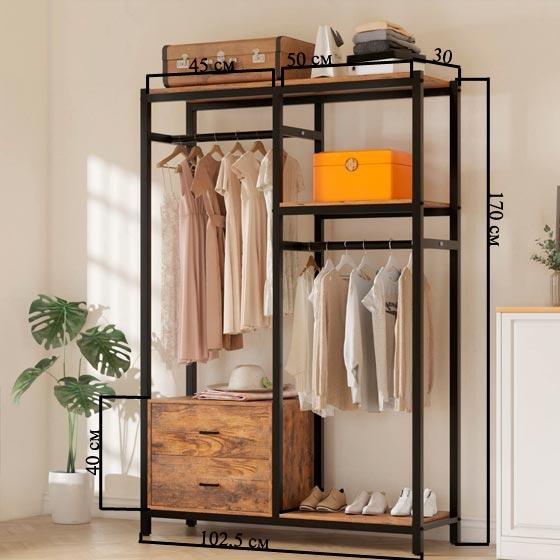 Способы оплаты Способы доставкиНадежная вешалка открытая, типа рейл. Каркас вешалки изготовлен из металлической профильной трубы с покрытием порошковой краской. Ножки оснащены регулируемыми опорами съемного типа. Вешалка обладает несколькими выдвижными ящиками, которые изготовлены из ламинированного дсп.